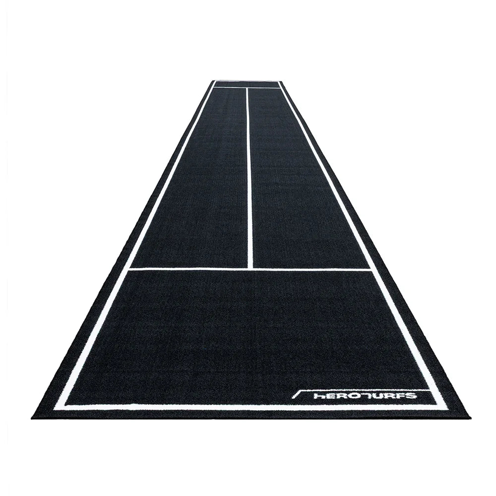 Elle offre une largeur totale de 2 mètres (2 couloirs), 1,80 mètre de zones de landing (zones de réception) et 12,5 mètres de longueur d’entraînement effective, garantissant une distance réelle optimisée pour les séances exigeantes de poussée et de traction de traîneau.